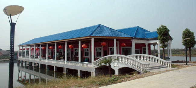 从汉宜高速公路枝江仙女道口往北5分钟,就是著名的鲁港水库,顺着水库堤坝一路东行3公里,赫然出现一片美丽的水域。水清鱼浅之旁,一排漂亮的休闲鱼庄---福苑鱼庄候立水岸,在一片乡村闲适之色中,等待你的光临。