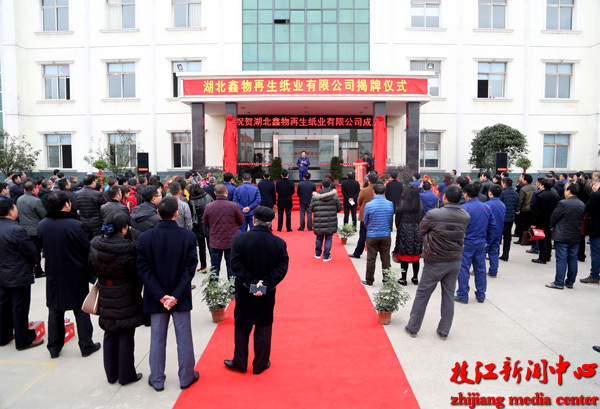 当天,袁卫东一行出席了湖北鑫物再生纸业有限公司的揭牌仪式。