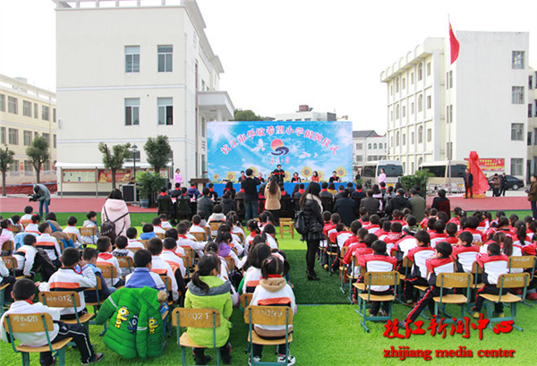 熊华敏女士在揭牌仪式上讲话。 去年9月,熊华敏回乡参加问安小学校友会,捐赠30万元为问安小学新建了接送学生通道、文化长廊和南校门。